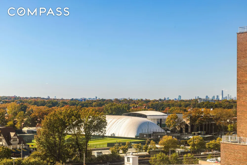 Views, Light and Space! This spacious, high floor converted 2-Bedroom, 1-Bath measures approximately 1000SF complete with a separate, windowed eat-in kitchen, an oversized living room, ample room for dining and a king-size primary bedroom. This home is bathed in sunlight and features direct south facing views of Forest Hills Gardens and the Manhattan Skyline. The apartment is extremely bright and the beautiful, open views change with the seasons!