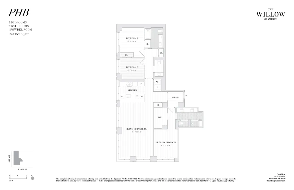 CLOSINGS COMMENCE THIS SPRING. 65% Sold. PENTHOUSE B at The Willow is a rare and inviting three-bedroom home. This corner residence is designed with understated elegance, exceptional flow, and high ceilings, and offers south and west exposures. A gracious foyer sets an elegant tone, leading to the thoughtful living and dining area. The windowed kitchen is intelligently designed, beautifully appointed, and tucked away just enough to allow for more formal entertaining. The primary bedroom suite is a private retreat with a walk-in closet and a spa-like en-suite bathroom that features a double vanity. Two additional bedrooms with generous proportions share a well-designed bathroom, offering comfort and privacy. A sleek powder room and a full-size washer and dryer are conveniently located to complete this exceptional home.