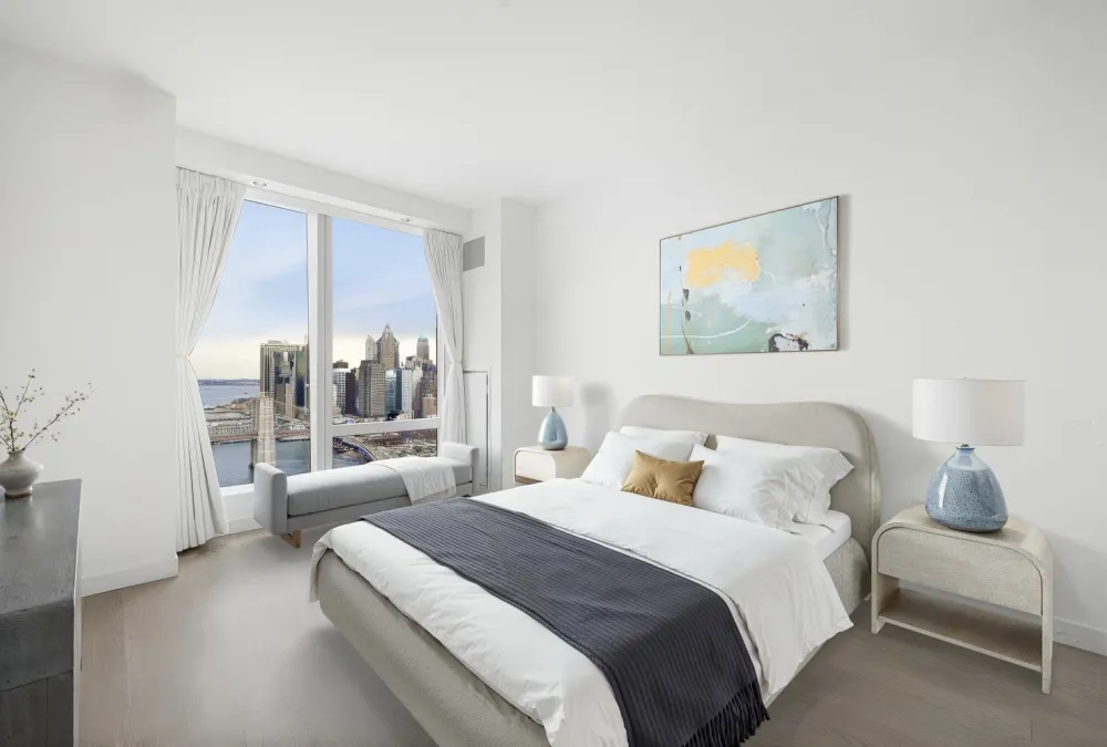 Perched perfectly on the 36th floor, Residence 36C is a palatial 1,487 SF corner home offering spectacular triple exposures (South, East & West) and unrivaled panoramic views of the Manhattan & Brooklyn Bridges, the East River, NY Harbor, and the glittering city skyline. This elevated sanctuary captures sunrises over the water and sunsets across Downtown Manhattan, creating an ever-changing, cinematic backdrop throughout the day.