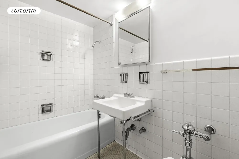 The living and dining areas are thoughtfully designed with symmetrical columns and intentional insets, creating depth and emphasizing the symmetry of the space. Lovingly maintained with the woodwork and lines of a fine yacht, you are enveloped in comfort and luxury. The spacious bedroom easily accommodates a king-sized bed, a chaise, and a large dresser, as well as a desk, and features abundant closet space, including a walk-in closet that is ready to be converted into a home office. The dappled sunlight and views of Grace Church add to the serene ambiance. For culinary enthusiasts, the kitchen is a highlight. It boasts Dakota Mahogany granite countertops, Bisazza Tile backsplash and walls, Allmilmo German cabinetry, and top-of-the-line Miele appliances, including ovens, dishwasher, refrigerator, and a Gaggenau cooktop. The sleek galley design offers ample space for efficient meal preparation, with thoughtful touches like a pull-out step stool, a tall slide-out pantry cabinet, and pull-out shelves in the base cabinets. Dinner will be superb!
