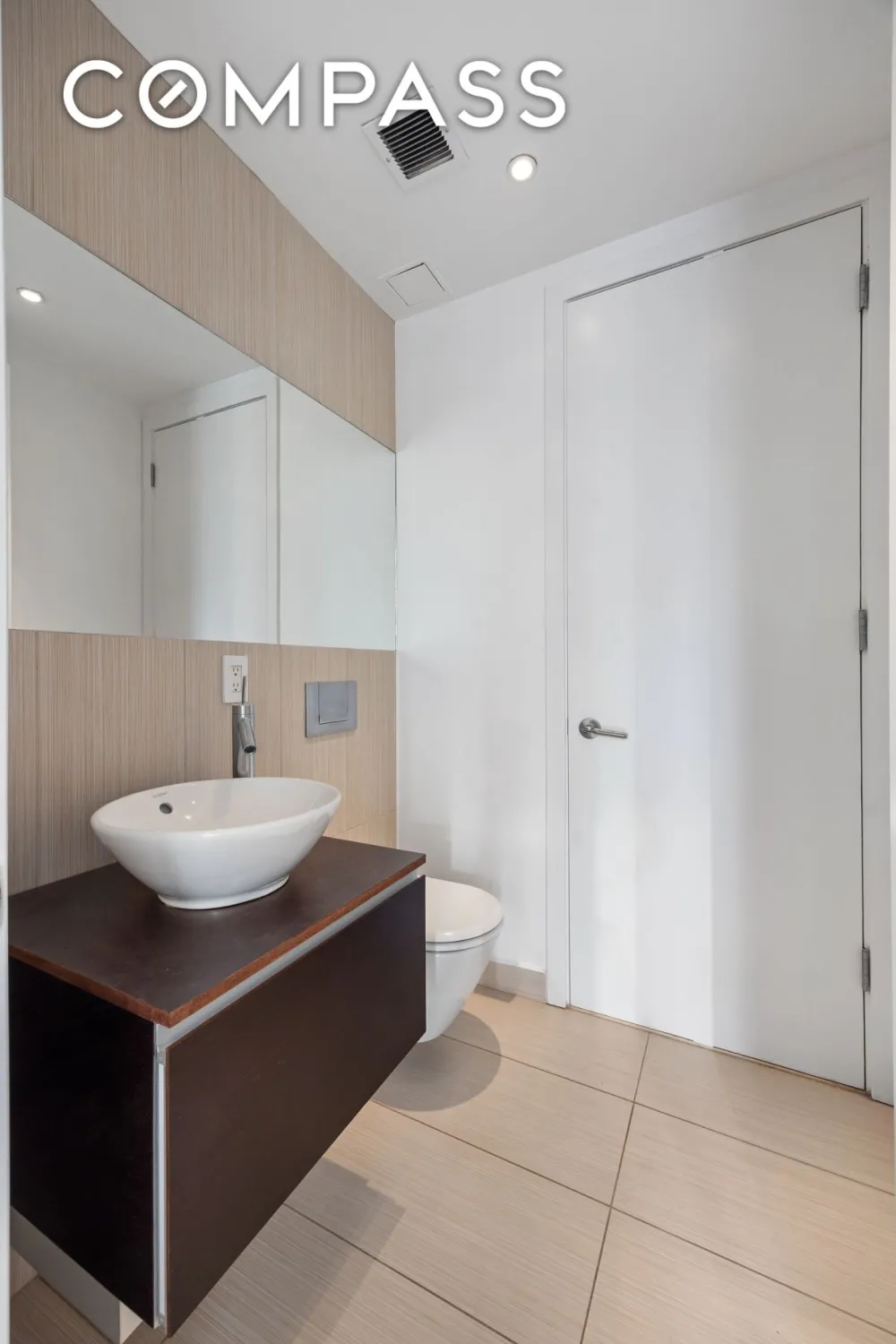 The south-facing primary bedroom is bright and comfortably accommodates a king-size bed, with a custom walk-in closet. The windowed en-suite bath includes Valcucine vanities, Duravit fixtures, a soaking tub, and Grohe fittings. Additional features include a powder room, custom closets throughout, a Nest thermostat, and a new GE washer/dryer.