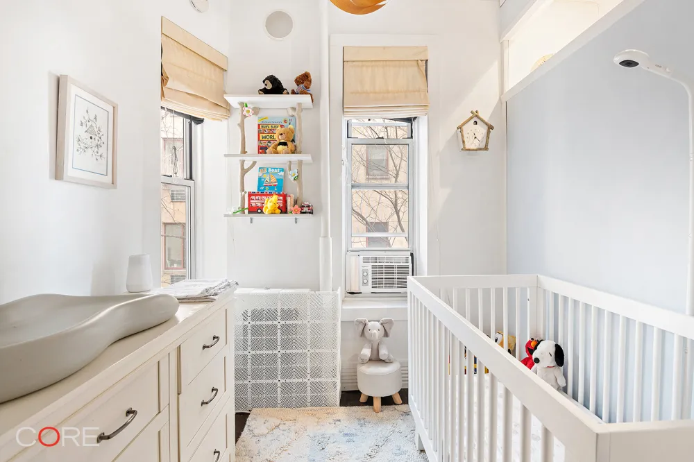This bright and airy home features nine windows in total, a spacious living and dining area ideal for entertaining, gorgeous hardwood floors, and a beautifully renovated, custom-designed kitchen. Formerly configured as a two-bedroom, the apartment is currently laid out as a generous one-bedroom with a windowed baby’s room or office, offering the potential for a future reconfiguration.