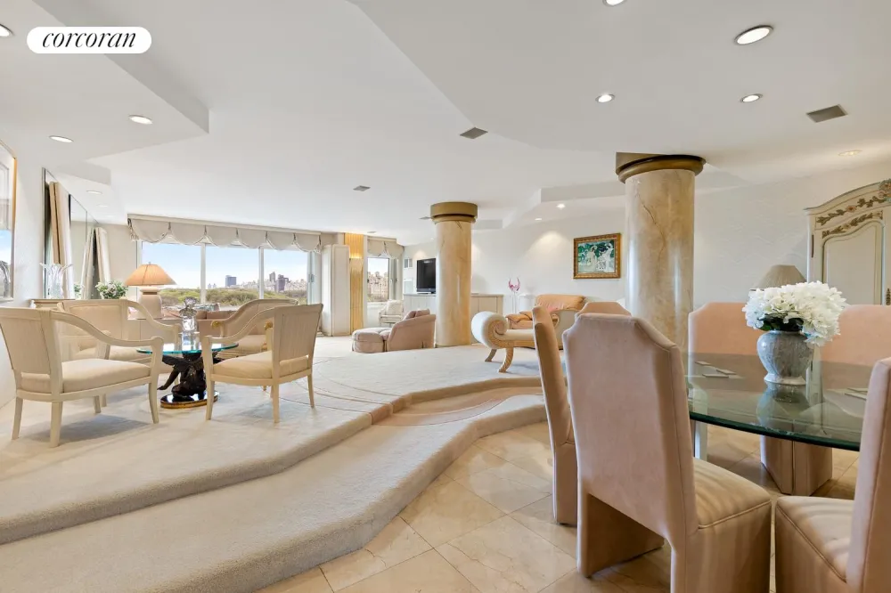 Bathed in natural light, the expansive living room-measuring approximately 40' x 22'-is among the largest along Central Park, providing breathtaking views and abundant sunlight throughout the year. Positioned just above the treetops, the residence enjoys sweeping, uninterrupted park vistas and a rare sense of openness. Its loft-like proportions create an ideal setting for both grand entertaining and comfortable everyday living.