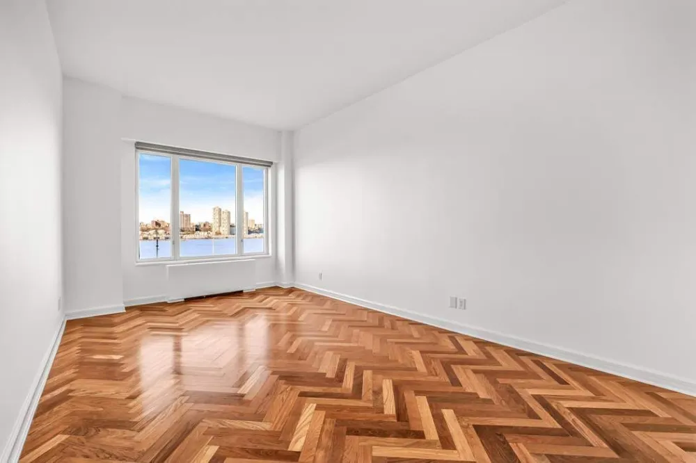 This immaculate two bedroom with high ceilings (10’ 9”) is super charged with light as all principal rooms directly front west over the Hudson River. The Layout is truly generous, with large-scale bedrooms and a very substantial entertaining/dining space adjacent to a very spacious kitchen. The Primary Suite is 20ft long and is supplemented by a large walk in closet, a 2nd closet and an oversized bathroom with double sink and vanity, standing shower and separate bath. The 2nd bedroom is very ample and is perfectly placed next to the 2nd full bathroom. The Kitchen receives significant light and is graced with many elegant cabinets, a good deal of working counter space, a Sub-Zero refrigerator and a Fisher Paykel dishwasher. Just off the kitchen you’ll find a stacked full washer/dryer in a laundry closet just off the entry to the apartment. There are wonderful herringbone floors of Brazilian cherry hardwood which have soundproofing installed underneath. Lastly, you’ll find a wealth of well-planned closet space throughout the apartment. This is a wonderful and truly radiant apartment available with reasonable carrying costs in a truly full-service building with an extensive array of amenities.
