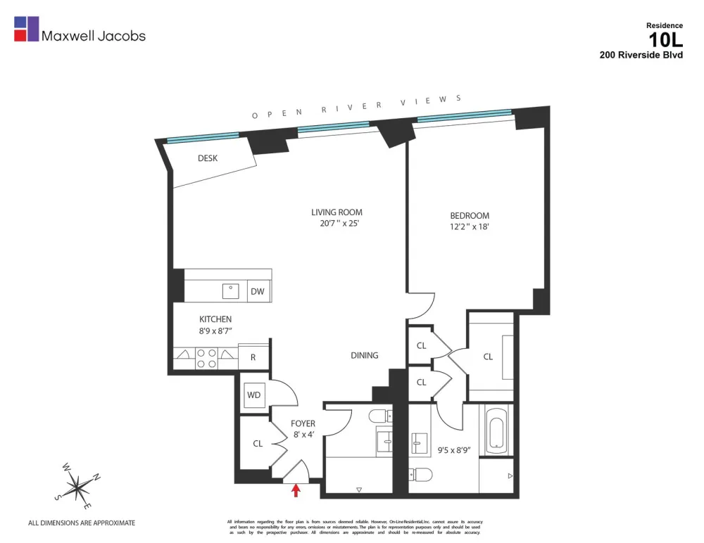 This stunning Junior 4/convertible 2 bedroom features an excellent layout and breathtaking views of the Hudson River from every room! It has a large living room, a separate dining area and a pass-through kitchen. The spacious bedroom has excellent closet space and a large en-suite bathroom. The apartment also has high ceilings, a second full bathroom, a vented washer-dryer, thru-the-wall HVAC, and oversized windows all facing West overlooking the Hudson River.