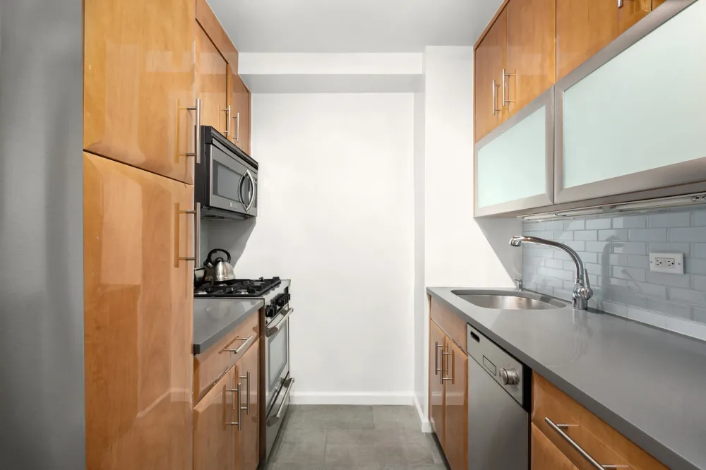 Welcome to Apartment 7U, a large north facing studio offering city views and natural light all day. The open living and dining room flow comfortably into a queen-sized sleeping area, which is separated by pocket doors. The kitchen includes a dishwasher, custom cabinetry and ample stone counter space for storage and food prep. There are two custom built-in closets, one of which leads into your tiled bathroom. Additionally, there is a linen closet and under window cabinetry.