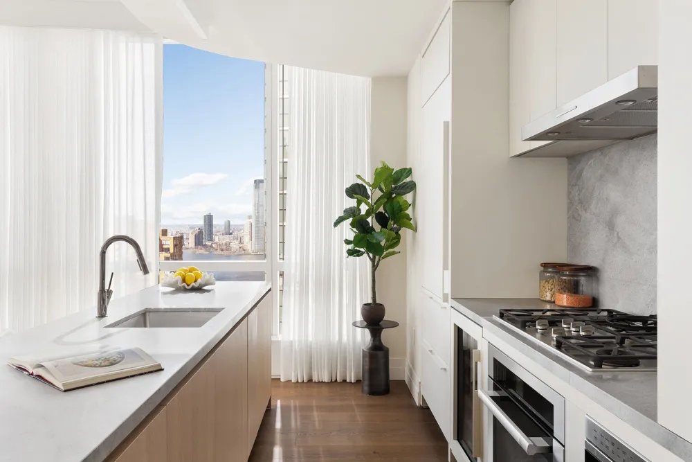 77 Greenwich is a luxury-defining LEED certified condominium overlooking New York Harbor and the Hudson River. Featuring a shimmering pleated glass facade, 77 Greenwich soars 500' above Lower Manhattan and contains 90 elegant 1-to-4-bedroom homes by design visionaries FXCollaborative and Deborah Berke of TenBerke.