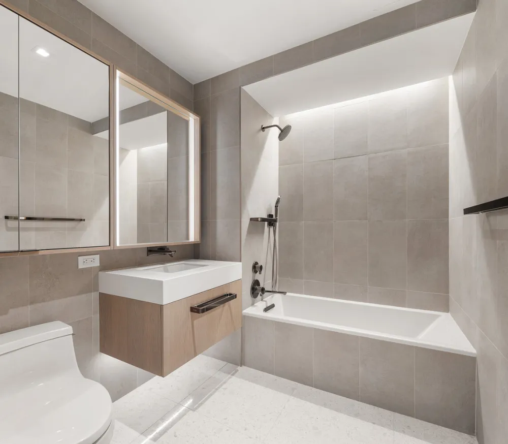 Downtowns preeminent new condominium with interiors by celebrated designer Deborah Berke of TenBerke and statement architecture by FXCollaborative. Every home in this luxury defining condominium features a direct view of the NY Harbor. This brand new three bedroom, three and half bath, 1905 SF home includes floor to ceiling crystalline glass windows allowing for an abundance of natural light, stunning water views and soaring ceilings of close to 11. The gracious entryway features custom millwork and stone flooring. A separate guest powder room features a custom Calacatta Lincoln marble sink and feature wall. The Deborah Berke custom designed European Poliform kitchen is equipped with an elegant, honed Blue de Savoie marble countertop and backsplash, Grohe faucets, and fully-integrated top of the line appliances from Wolf, Sub-Zero, and Miele. The entire kitchen is highly designed to seamlessly integrate natural light and water elements which is evident within the stone and cabinet design elements. The primary bedroom has a spacious walk-in closet and en-suite bathroom with radiant heated honed white striated marble floors, porcelain tile walls, double sinks, custom sycamore vanity cabinets, integrated medicine cabinets, a walk-in rain shower, and a deep soaking tub. The secondary bedrooms are neatly tucked away in their own wing, and each features an ensuite bathroom with honed Arabesque marble floors, floating vanities, and Hansgrohe fixtures. An in-unit Miele washer/dryer, custom millwork, and energy efficient electric heating and cooling with variant refrigerant flow complete this home. 77 Greenwich is a luxury-defining LEED certified condominium overlooking New York Harbor and the Hudson River. Featuring a shimmering pleated glass faade, 77 Greenwich soars 500 above Lower Manhattan and contains 90 elegant 1-to-4-bedroom homes by design visionaries FXCollaborative and Deborah Berke of TenBerke. The building offers over 10,000 SF of incredible lifestyle amenities including the exclusive Cloud Club located at the top of the tower, which features 360 degree skyline and water views and includes a fireplace lounge, double-height fitness center outfitted by the Wright Fit, private dining room, flex space for yoga or events and a childrens playroom Separately, the 12th floor will offer a zen garden and dog run. The building is moments from The Battery, South Cove Park, Brookfield Place, One World Trade Center, South Street Seaport, and Battery Park City, and it is surrounded by a wide range of trendy restaurants, bars, cafes, and shops. Nearby subway lines include the 2/3/4/5/R/W/J/Z. Pets are welcome.