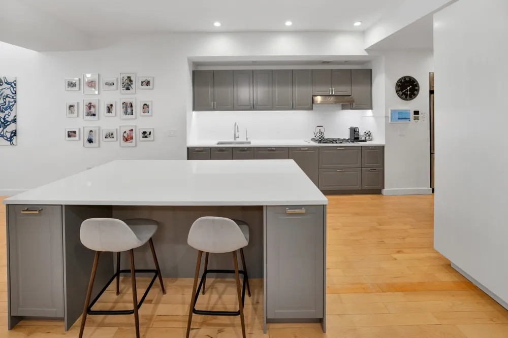 Welcome to Apartment 1824 at 15 Broad Street, an expansive loft residence thoughtfully redesigned to balance grand scale with exceptional functionality. Soaring ceiling heights of over 10.5 feet enhance the sense of volume and light, while the open-concept living and dining area flows seamlessly into a renovated chef's kitchen. The kitchen features a large island with seating for two and high-end appliances, including a JennAir refrigerator, Bosch stove and dishwasher, and a Whirlpool oven-making the space equally suited for everyday living and entertaining. Central air conditioning, hardwood floors, and an in-unit washer and dryer provide modern comfort throughout.