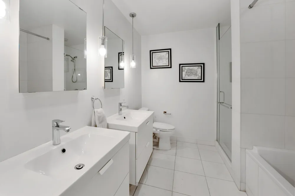 The apartment's design thoughtfully maximizes natural light, with glass enclosures for two of the bedrooms that allow sunlight to pour into the living space while maintaining privacy and architectural interest. The home features three bedrooms and two renovated bathrooms. The bathrooms are finished with custom made imported honed Thassos Greek marble tile - one bathroom with a standing shower and tons of additional storage and the other offering double vanity sinks, a soaking tub, and a separate standing shower. Impeccably designed storage throughout including custom built-ins and cleverly integrated lofted spaces makes this home as functional as it is beautiful. A rare opportunity to own a meticulously reimagined home that balances light, scale, and brilliant design. Two storage units are included - one is easily accessible on the 18th floor.
