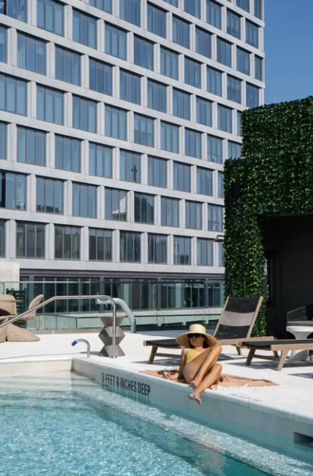 The building's amenities include a bright fitness center, game room, golf simulator, coworking lounge, conference rooms, rooftop sun deck, and a private outdoor pool located on the fifth floor. The building also offers bike storage, and private storage cages for rent– with a door person present seven days a week from 11AM to 7PM.