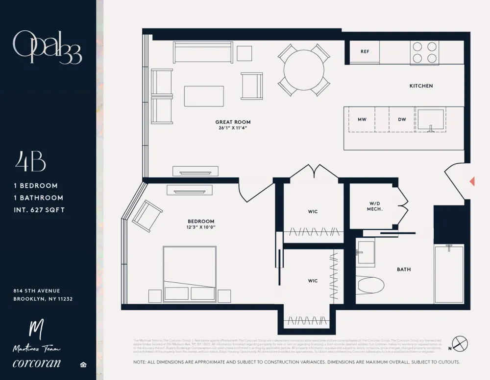 Welcome to Residence 4B at Opal 33, a beautifully laid-out 1-bedroom, 1-bath boutique condominium home in the heart of Greenwood Heights. This residence features a spacious 26'1" x 11'4" great room, offering exceptional flexibility for living, dining, and entertaining. The open-concept layout flows... See more