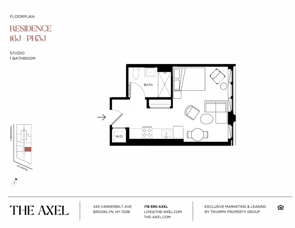 From its perch at the intersection of three legendary Brooklyn neighborhoods, The Axel is the latest high rise to make its debut in New York City. Offering studio to three bedroom luxury rental units with access to an abundance of unrivaled amenity space. The unit features a brand new Blomberg appliance package, floor to ceiling windows, and in unit washer/dryer. The carefully crafted design of this studio includes a walkway alley kitchen, living space, and bedroom closet. This east facing unit also features wide plank flooring, nine foot ceilings, walk in shower, and sun drenched open views. Located at 545 Vanderbilt Ave, The Axel is conveniently within walking distance of some of Brooklyn’s landmarks including the Brooklyn Botanical Garden, Grand Army Plaza, Prospect Park, and Barclays Center. Transportation in the city is a breeze as The Axel is nested near over ten MTA train lines and the Long Island Rail Road. The building's amenities include a bright fitness center, game room, golf simulator, private work spaces, rooftop sun deck, and a private outdoor pool. The Axel twists toward the sky and beckons you to hear its story. Let yours take shape here; living, working and entertaining and enjoying the life you’ve yet to live. Call or email to schedule your viewing.