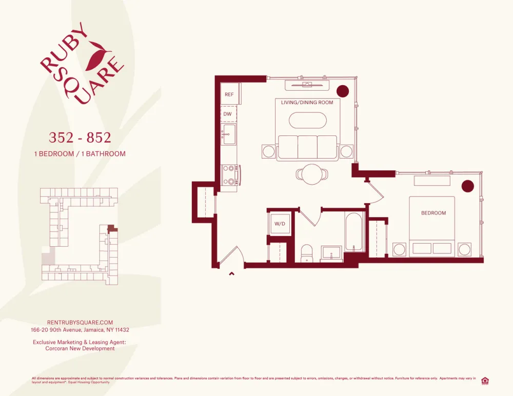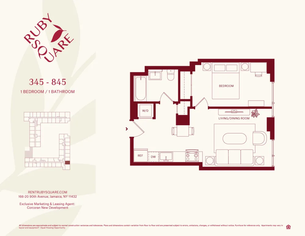 Spacious One Bedroom apartment only minutes from the F train in the heart of Queens. Contact a Corcoran New Development Representative for more information and to schedule your tour today. Welcome to Ruby Square, a new urban oasis centrally located in the heart of bustling Jamaica, Queens. Combining... See more