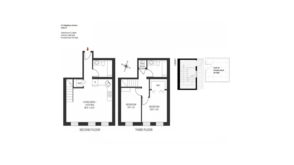 577 Madison unit 2A is a 2 bedroom 2 bath DUPLEX in a townhouse style living! This condo is on a historic Bedford Stuyvesant tree lined block with amazing original brownstone details. and a Private roof outdoor space