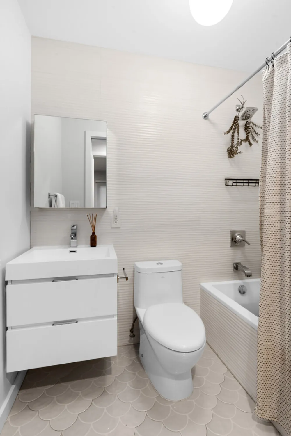All three bedrooms are on the garden level, offering quiet and tranquility. The primary suite is complemented by a spa-inspired bathroom with a glass-enclosed rainfall shower and double vanity. The secondary bedrooms share a beautifully appointed full bath with a deep soaking tub and custom cabinetry. Wide-plank hardwood flooring and bespoke walnut millwork add warmth, texture, and continuity throughout.
